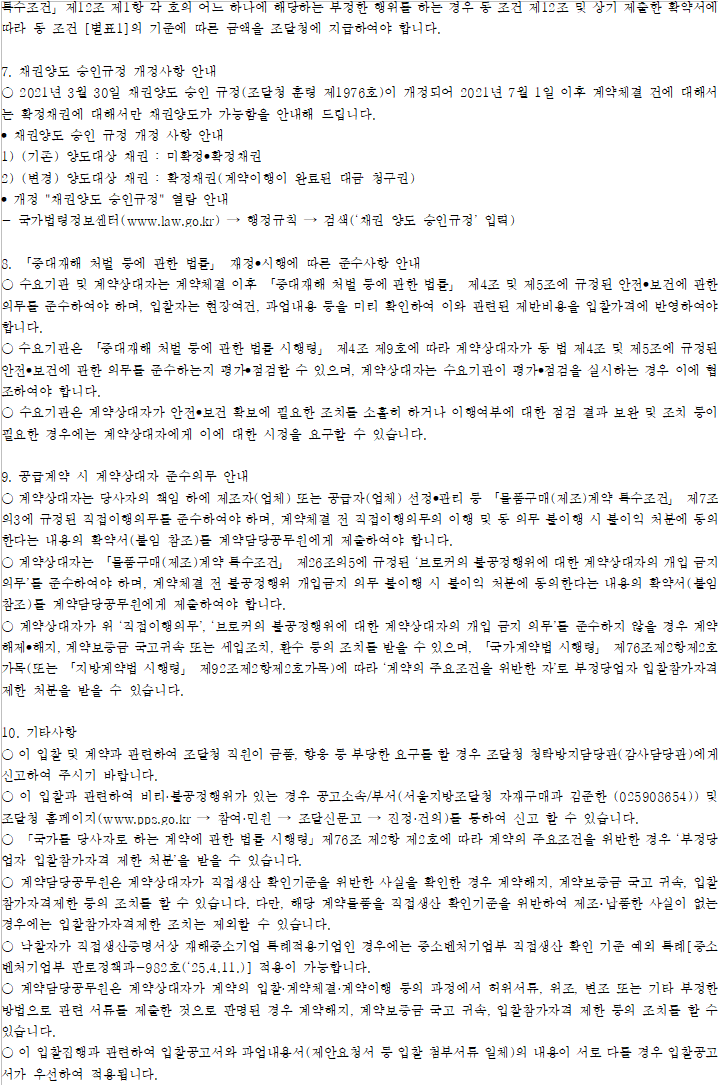 - 조달청 중소기업자간 경쟁물품에 대한 계약이행능력심사 세부기준-추정가격 10억원 이상인 중소기업자간 경쟁물품 계약이