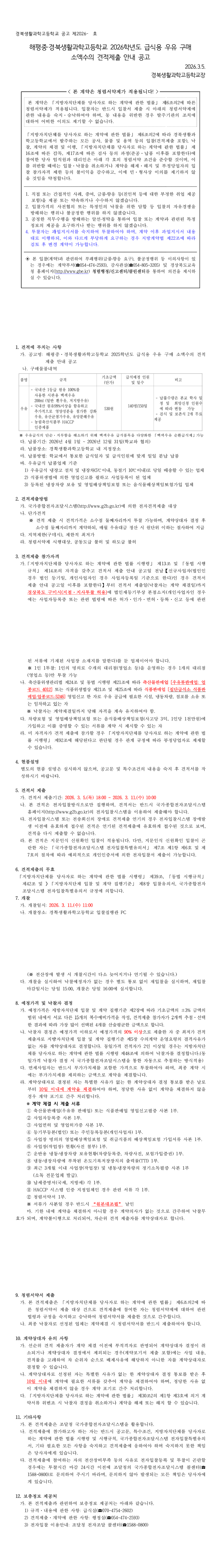 해평중·경북생활과학고등학교 2026학년도 급식용 우유 구매 소액수의 견적제출 안내 공고 |