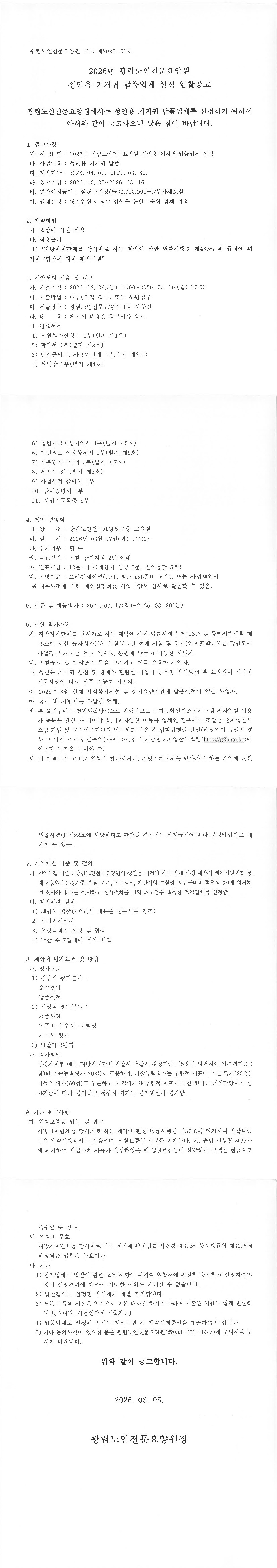 2026년 광림노인전문요양원 성인용 기저귀 납품업체 선정 입찰공고 |