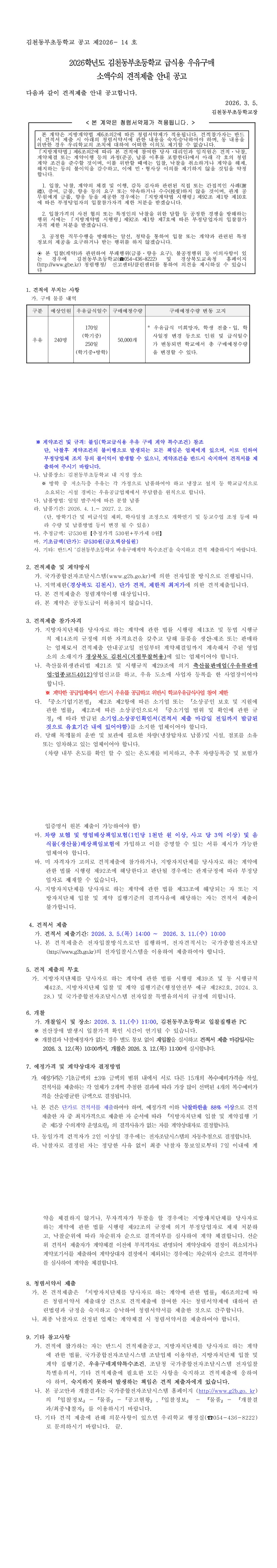 2026학년도 김천동부초등학교 학교급식용 우유 구매 소액수의 견적제출 안내 공고 |