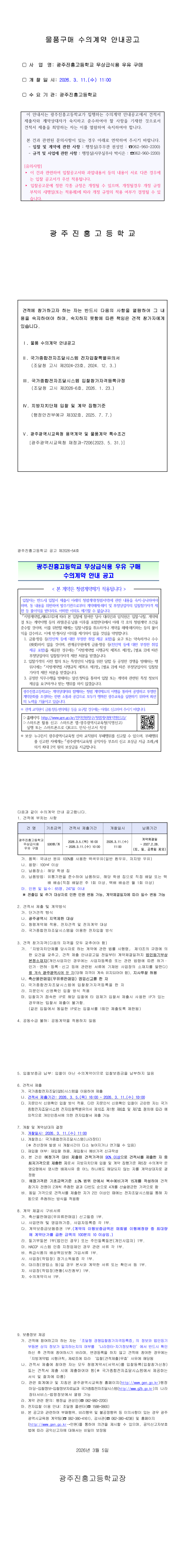 2026학년도 광주진흥고등학교 무상급식용 우유 구매 수의계약 안내 공고 |