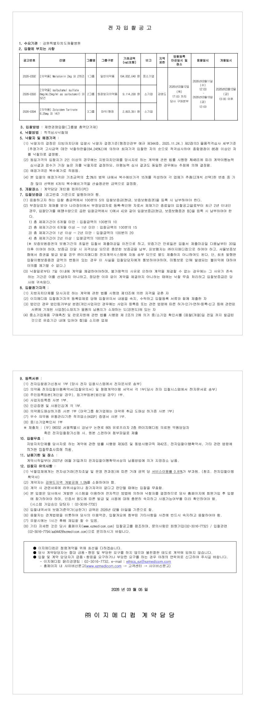 2026년 강원특별자치도재활병원 정규 의약품 구매 입찰 공고 |