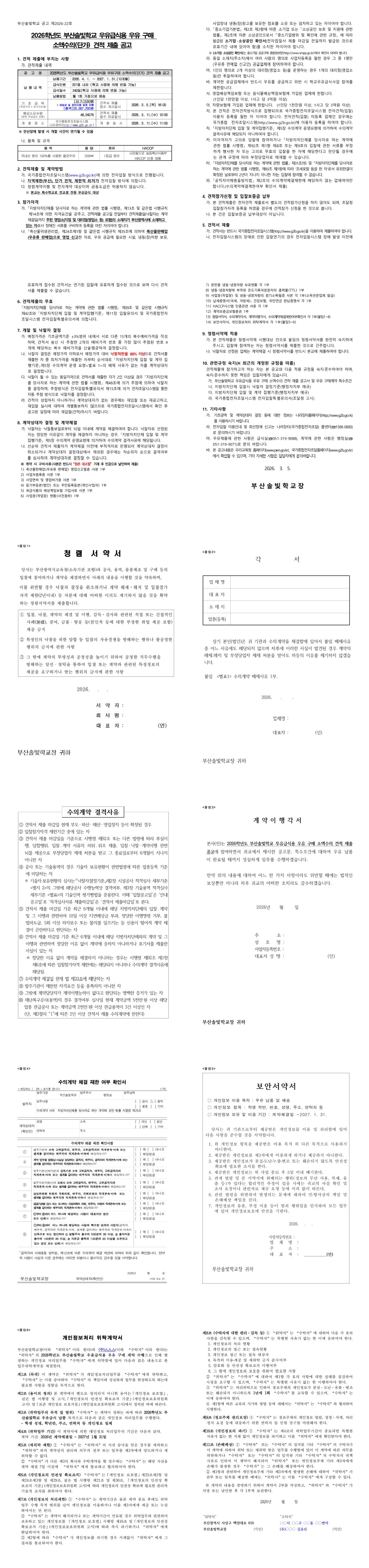 2026학년도 부산솔빛학교 우유급식용 우유구매 소액수의(단가) 견적 제출 공고 |