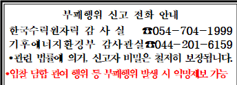 ※ 유자격 심사 및 접수, 정보 제공처 : 한수원(주) 조달처 공급자관리부(☎054-704-5372)