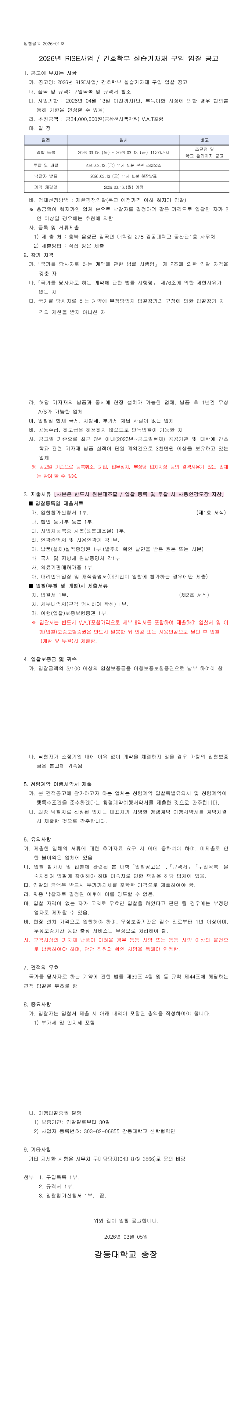 2026년 RISE사업 / 간호학부 실습기자재 구입 입찰 공고 |
