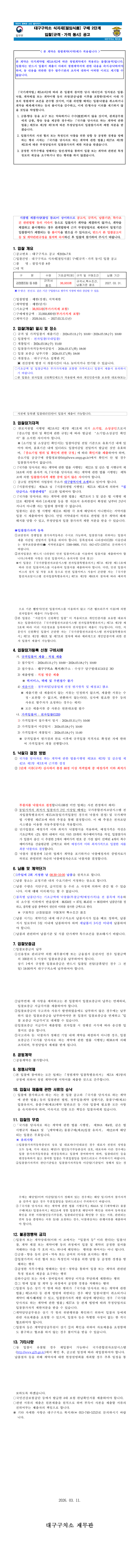 대구구치소 식자재[절임식품] 구매 2단계[규격 가격 동시] 입찰 공고 |
