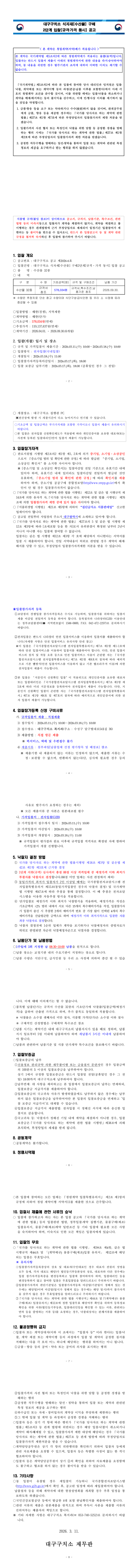 대구구치소 식자재[수산물] 구매 2단계[규격?가격 동시] 입찰 공고 |