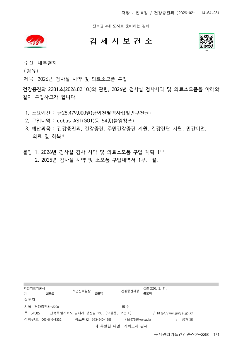 2026년 검사실 시약 및 소모품 구입 |