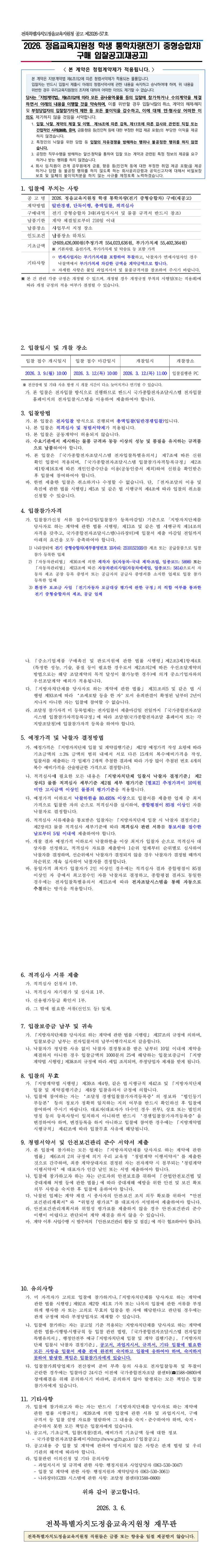 2026. 정읍교육지원청 학생 통학차량(전기 중형승합차) 구매 |