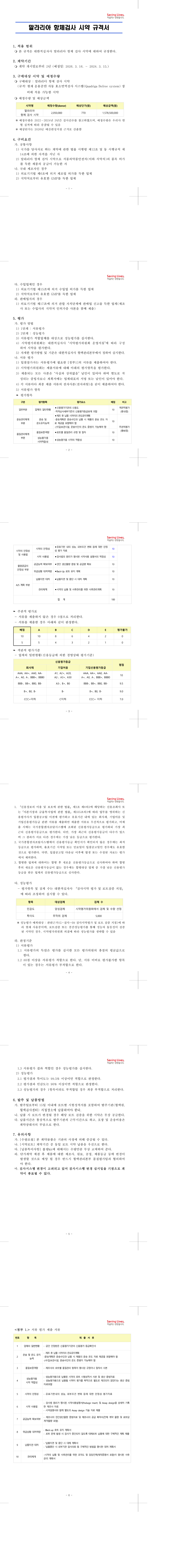 말라리아 항체검사 시약 구매 단가계약(수의시담) |