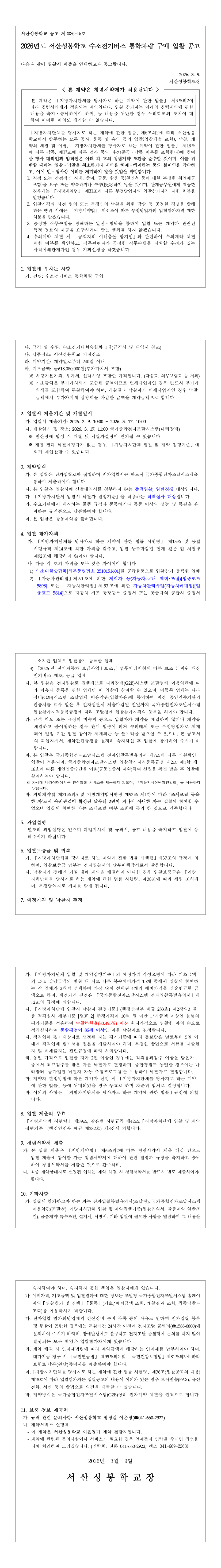 2026년도 서산성봉학교 수소전기버스 통학차량 구매 |