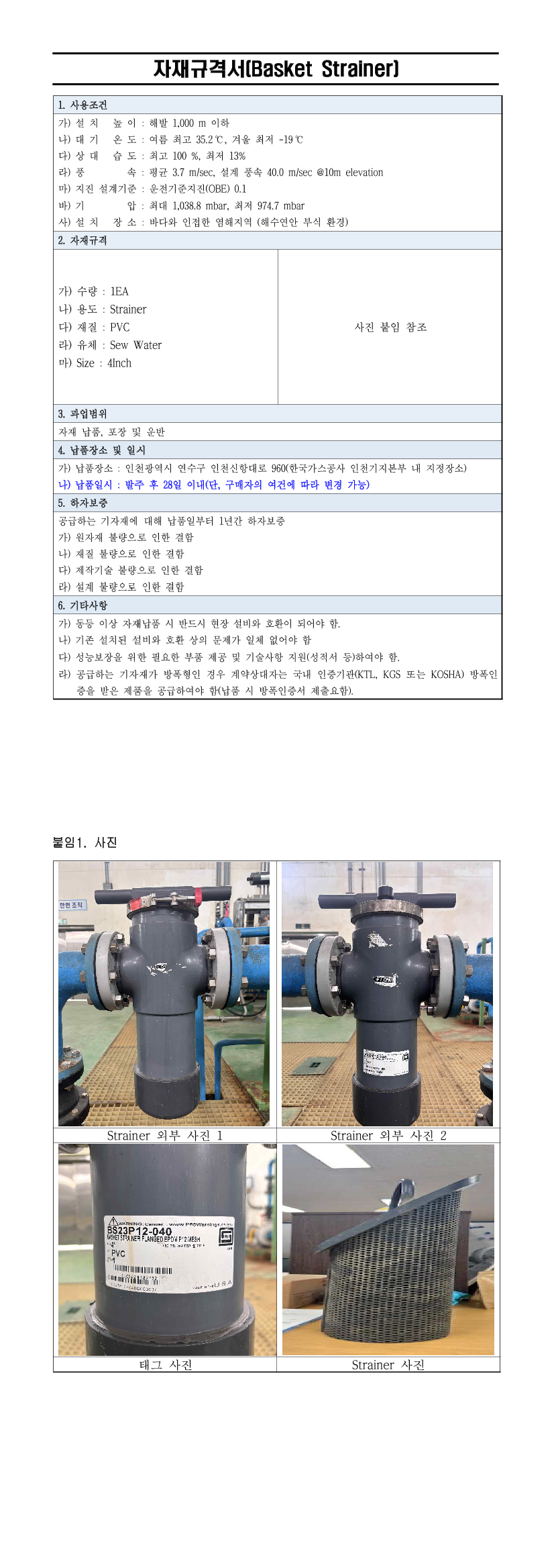(전자견적수취) Basket Strainer 구매 |
