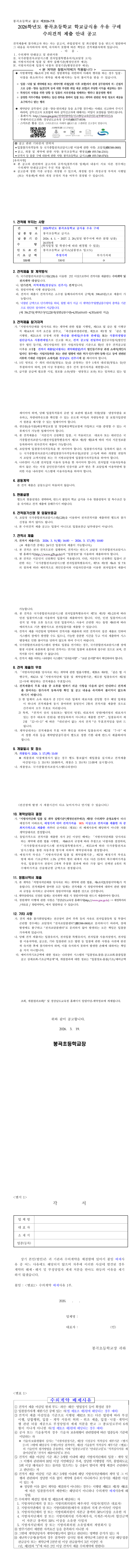 2026학년도 봉곡초등학교 학교급식용 우유 구매 수의견적 제출 안내 공고 |