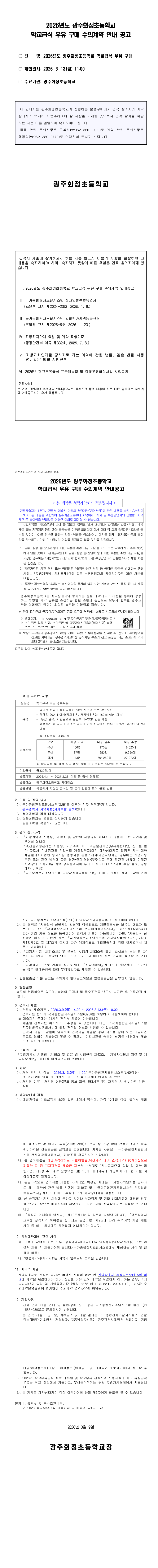 2026년도 광주화정초등학교 학교급식 우유구매 수의계약 안내공고 |