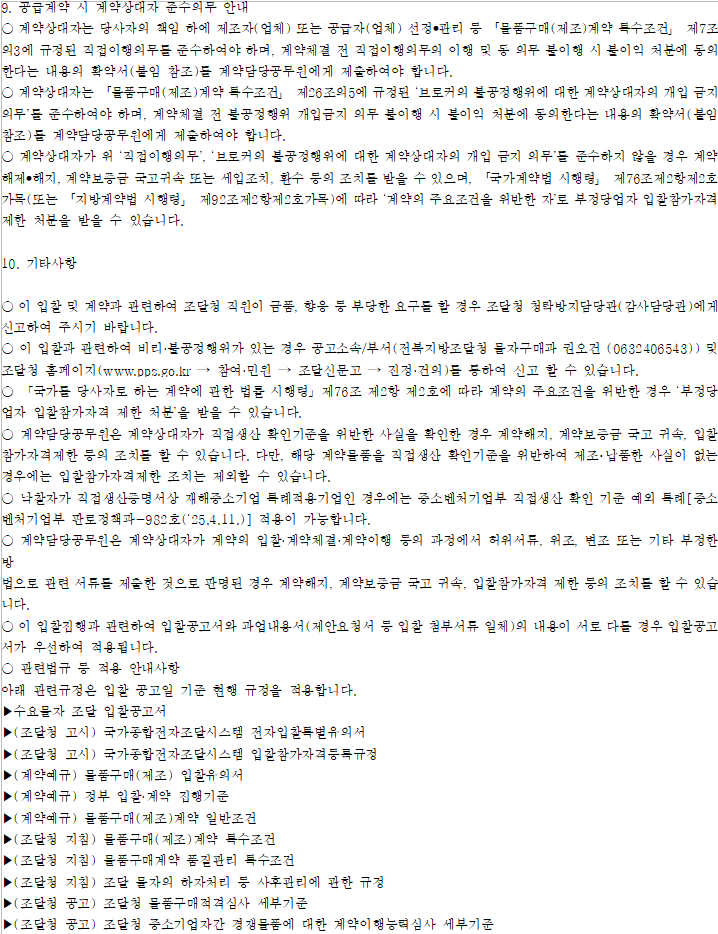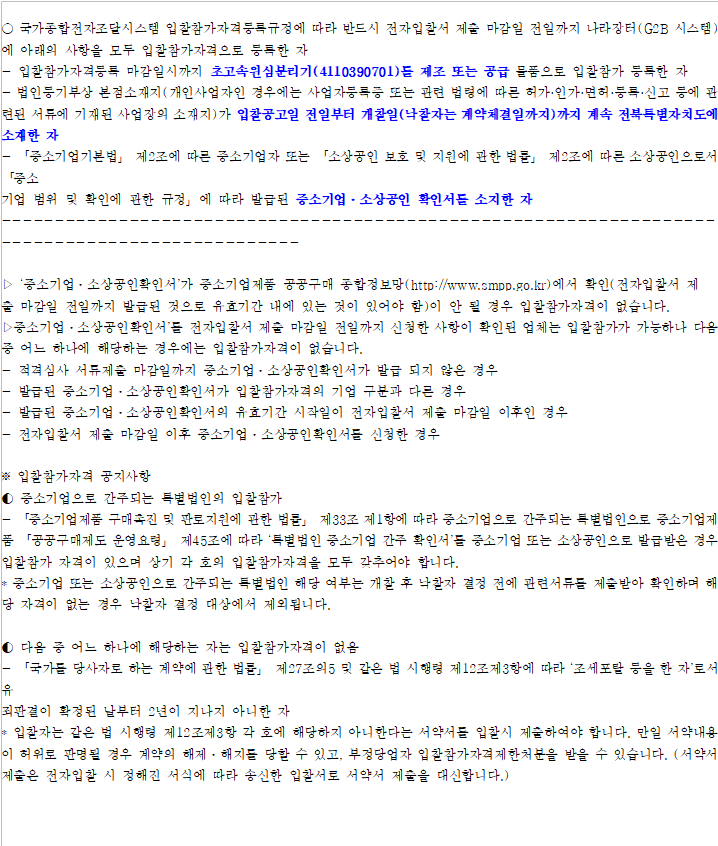 ○ 이 입찰은 「국가를 당사자로 하는 계약에 관한 법률」 제10조 제2항 제1호 및 같은 법 시행령 제42조 제1항에 따라 낙찰