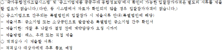 ○ 적격심사 대상자는 국가종합전자조달(G2B)시스템을 통하여 통보(받은 문서함에서 확인)하며, 적격심사에 소요되는 행정