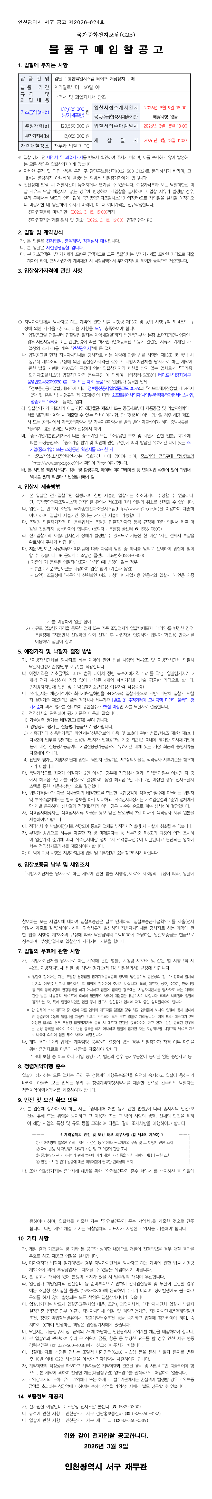 검단구 통합백업시스템 테이프 저장장치 구매 |
