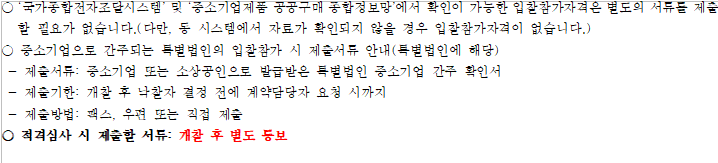 ○ 적격심사 대상자는 국가종합전자조달(G2B)시스템을 통하여 통보(받은 문서함에서 확인)하며, 적격심사에 소요되는 행정소요일수를 감안하여 필요한 경우 예정가격이내 입찰자를 대상으로 동시에 적격심사서류 제출을 요구할 수 있습니다.