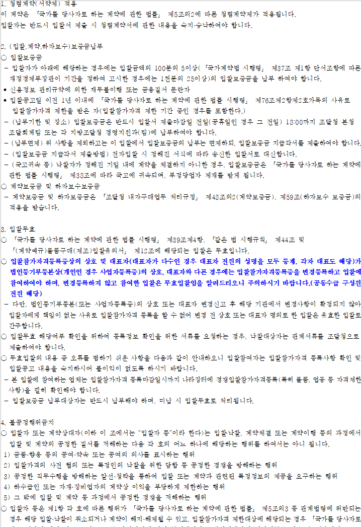 ○ 이 입찰은 「국가를 당사자로 하는 계약에 관한 법률」 제10조 제2항 제1호 및 같은 법 시행령 제42조 제1항에 따라 낙찰자를 결정합니다.