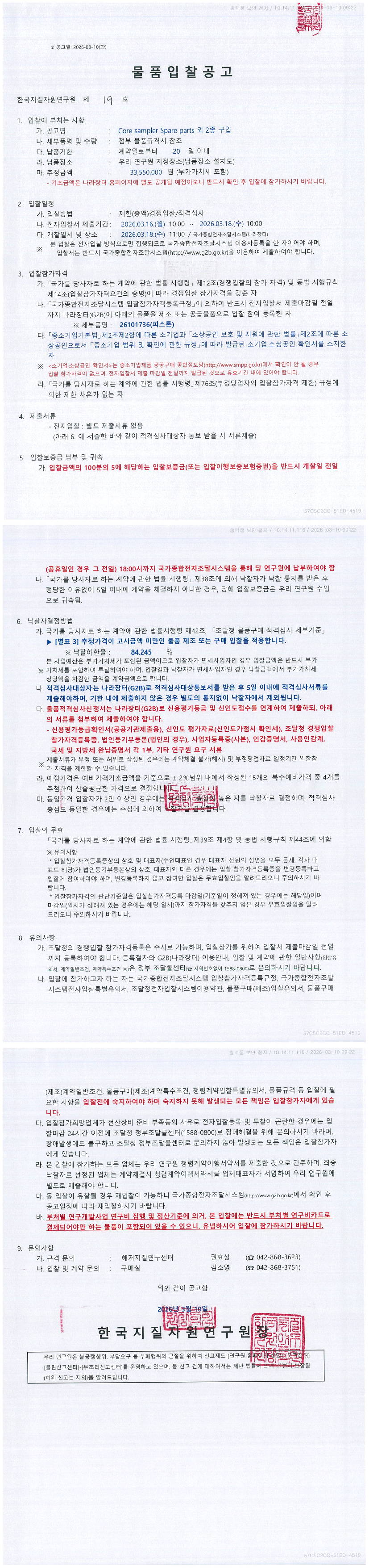 Core sampler Spare parts 외 2종 구입 |