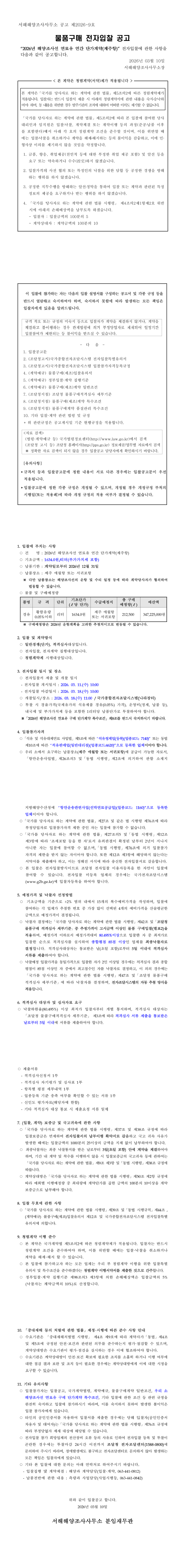 2026년 해양조사선 연료유 연간 단가계약(제주항) |