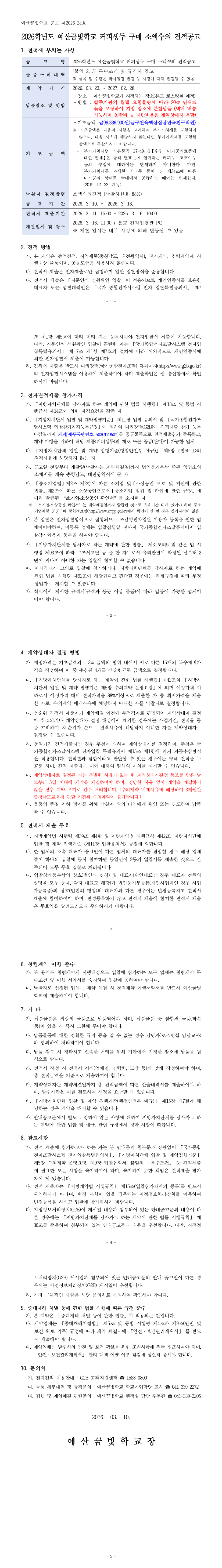 (재공고)2026학년도 예산꿈빛학교 커피생두 소액수의 견적공고 |