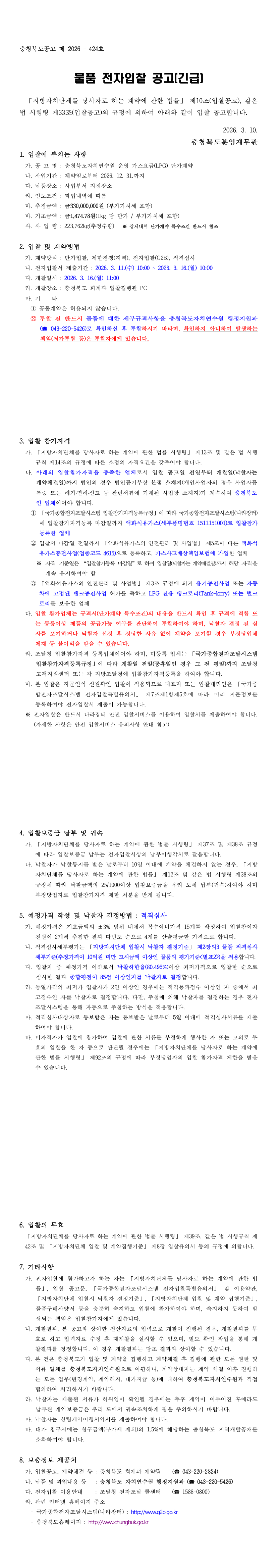 충청북도자치연수원 운영 가스요금(LPG) 단가계약 |