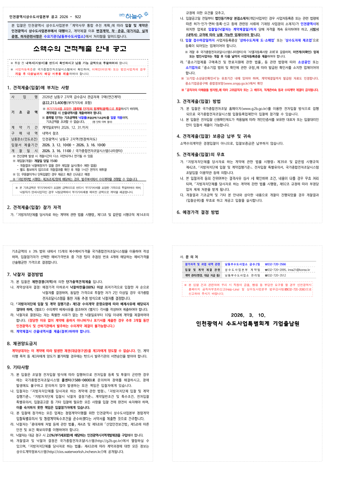 2026년 남동구 2지역 급수공사 관급자재 구매(연간계약) |