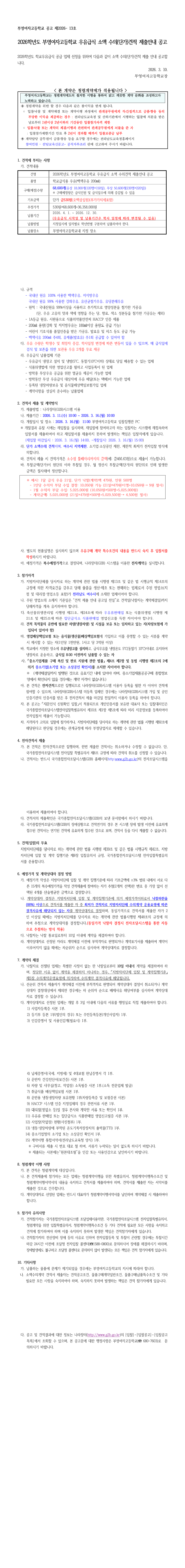 2026학년도 부영여자고등학교 우유급식 소액 수의(단가) 견적 제출 안내 공고 |