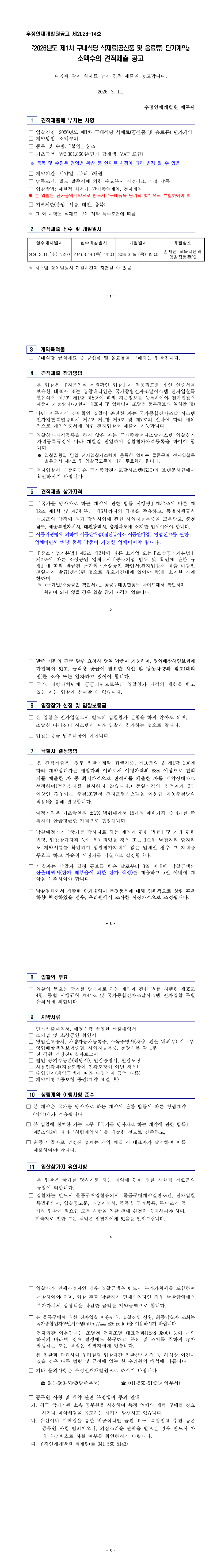 2026년도 제1차 우정인재개발원 구내식당 식재료 단가계약(공산품 및 음료류) |