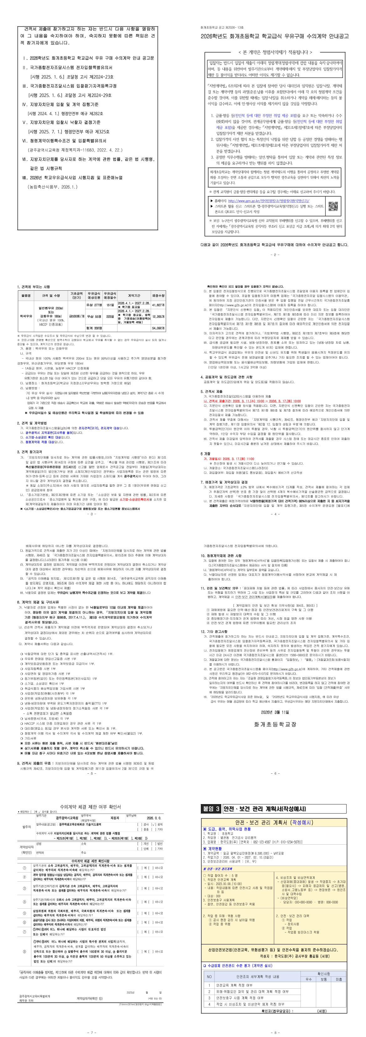 2026학년도 화개초등학교 학교급식 우유구매 수의계약 안내공고 |