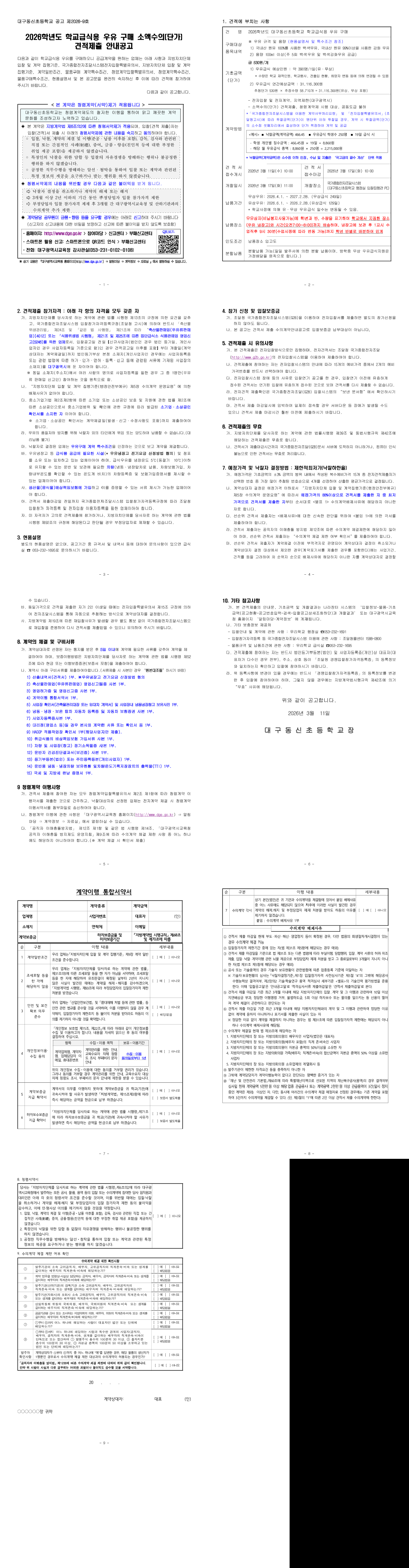 2026학년도 학교급식용 우유구매 소액수의(단가) 견적제출 안내 공고 |
