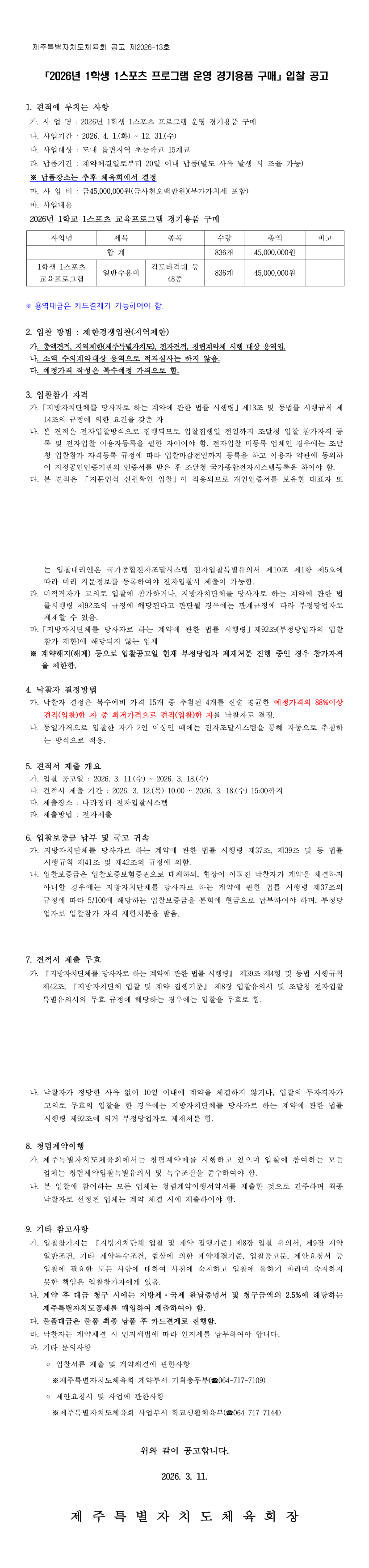 1학생 1스포츠 교육프로그램 운영 경기용품 구매 소액수의 견적 제출 공고 |