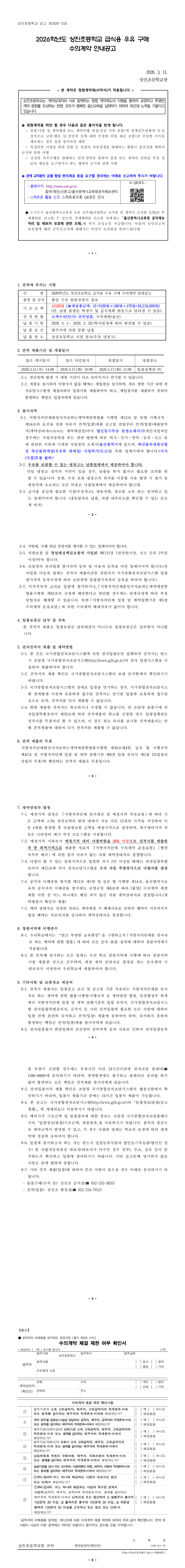 2026학년도 상진초등학교 급식용 우유 구매 수의계약 안내 공고 |