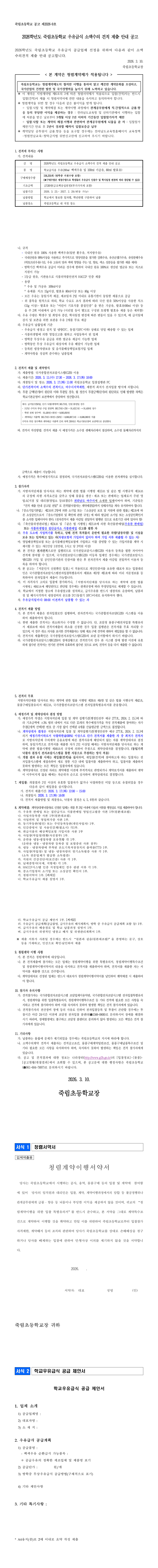 2026학년도 죽림초등학교 우유급식 공급 계약 |