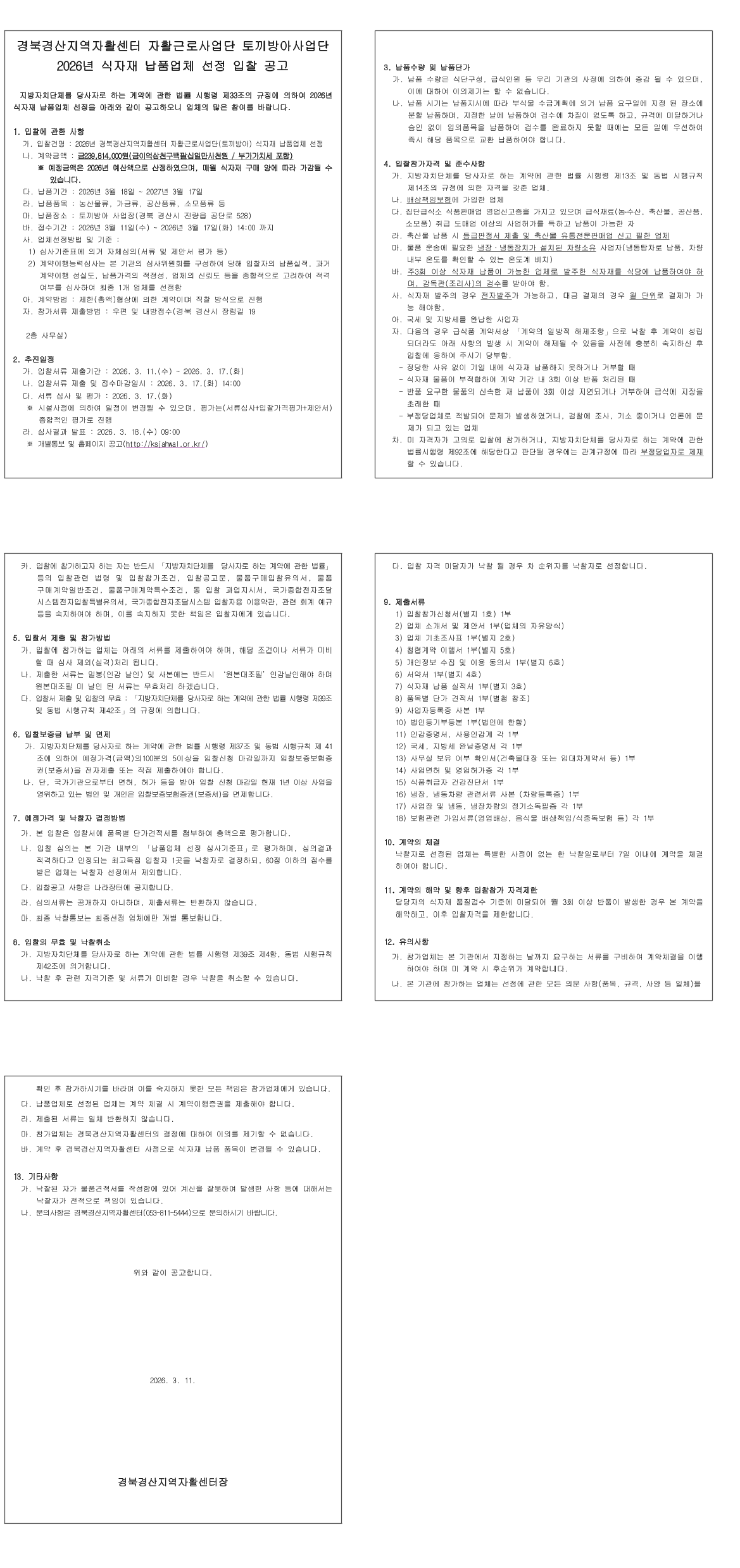 2026년 경북경산지역자활센터 식자재 납품업체 선정 입찰 공고 |