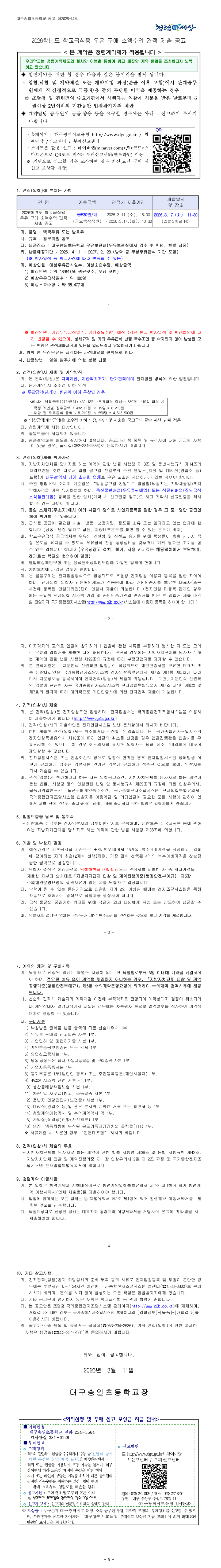 대구송일초 2026학년도 학교급식용 우유 구매 소액수의 견적 제출 공고 |