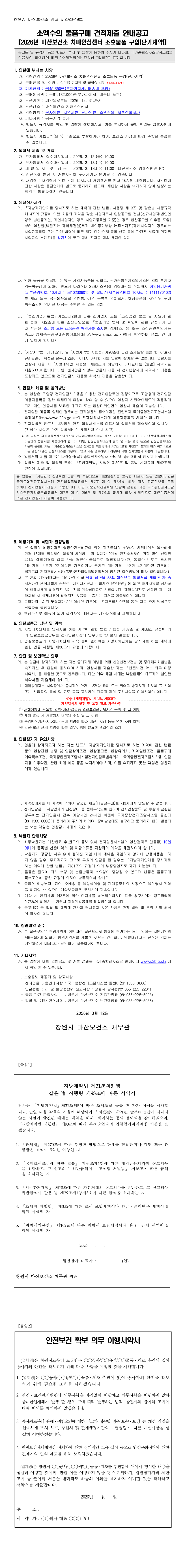 소액수의 견적제출 안내(2026년 마산보건소 치매안심센터 조호물품 구입(단가)) |