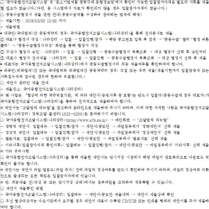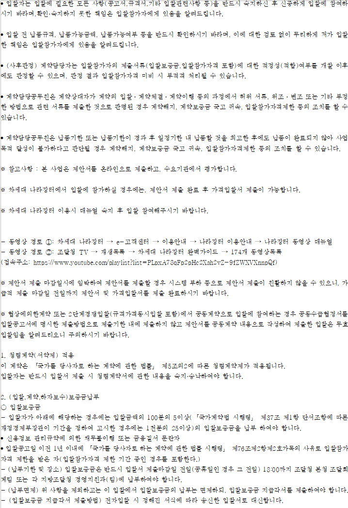기타 세부사항은 전자입찰 공고서에 첨부된 과업내용서, 내역서 등을 반드시 확인하시기 바랍니다.