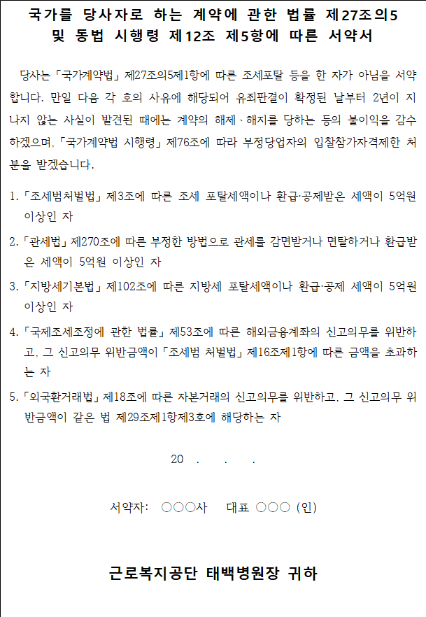 1) 「국가를 당사자로 하는 계약에 관한 법률」 제27조의5 및 「같은 법 시행령」 제12조제3항에 따라 ‘조세포탈
