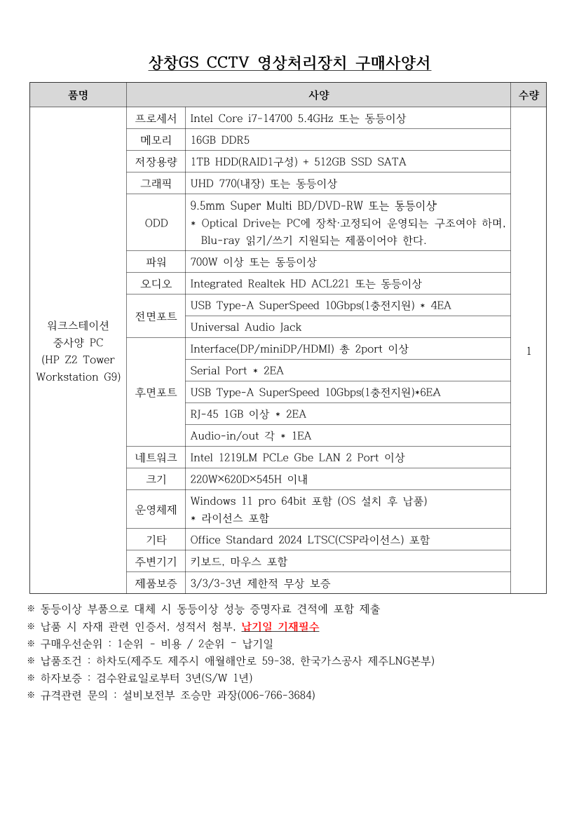 [전자견적서 수취]상창GS CCTV 영상처리장치 구매_제주LNG본부 |
