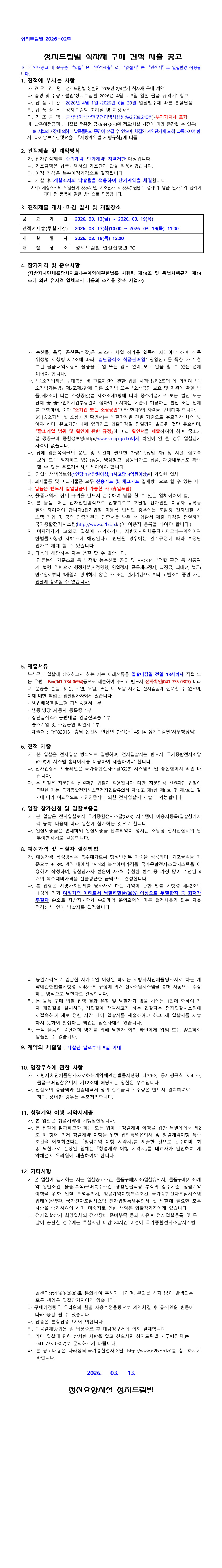 2026년 2분기 성지드림빌 생활인 식자재 구매 |