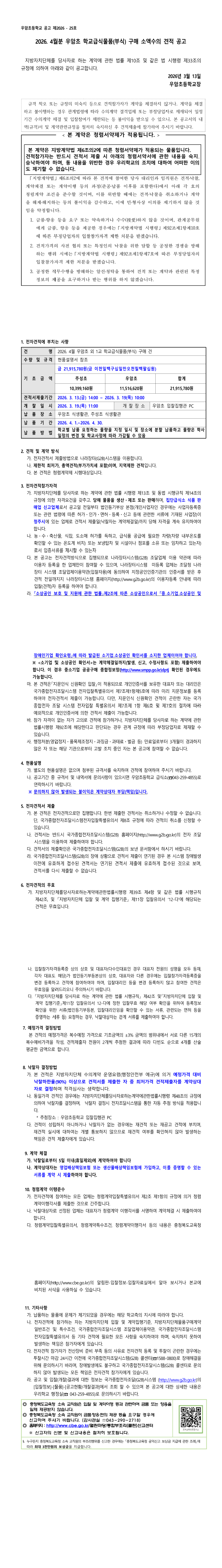 2026.4월분 우암초 외1교 학교급식물품(부식) 수의계약 견적공고 |