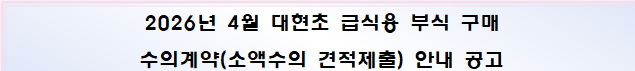 대현초 급식용 부식구매 소액수의 견적제출 공고