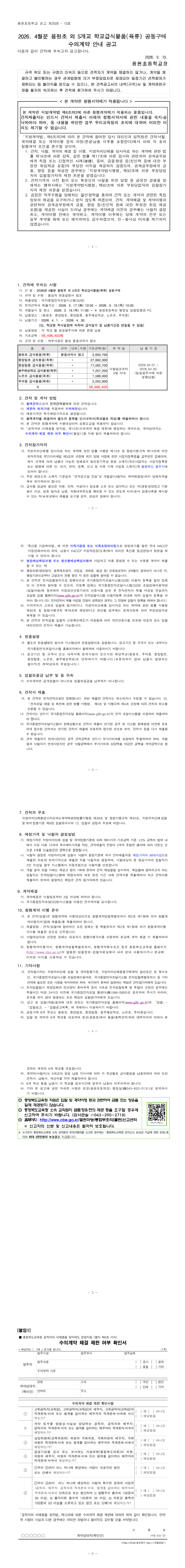 2026. 4월분 용원초 외 5개교 학교급식물품(육류) 공동구매 수의계약 안내 공고 |