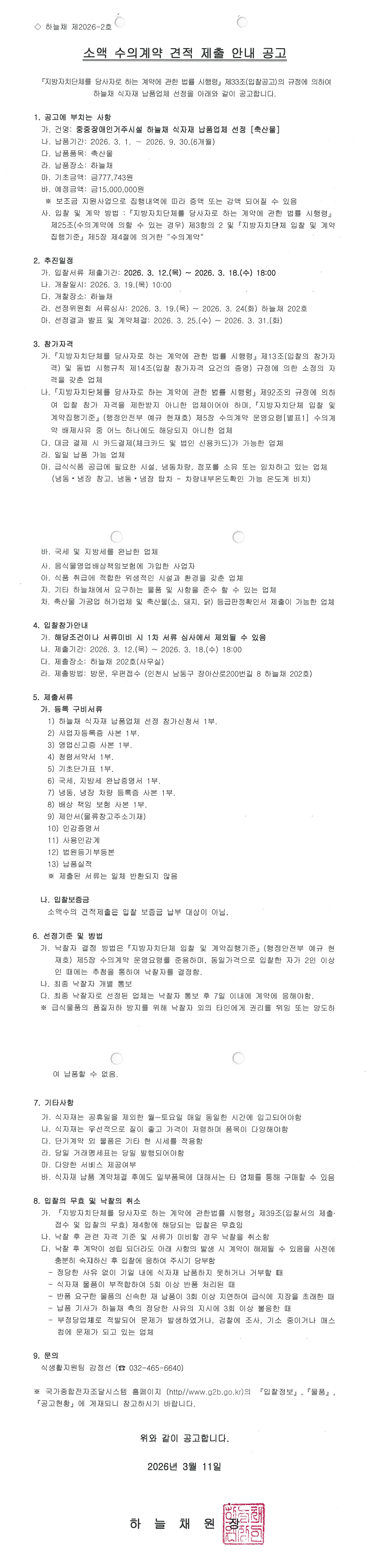 중증장애인거주시설 하늘채 식자재 납품업체 선정(축산물) |