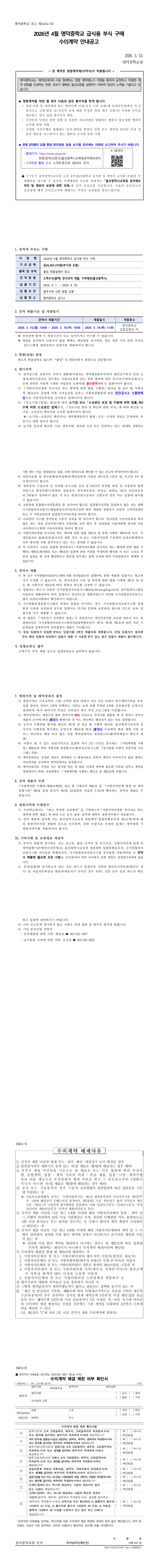 2026년 4월 명덕중학교 급식용 부식 구매 수의계약 안내 공고 |