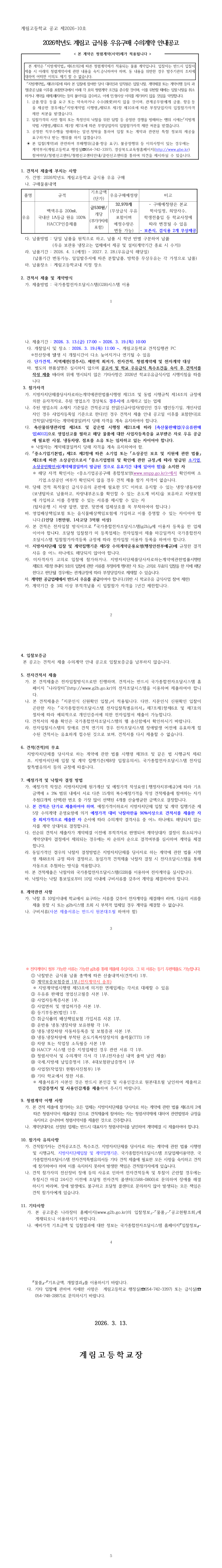 2026학년도 계림고 급식용 우유구매 소액수의 견적 제출 안내 공고 |