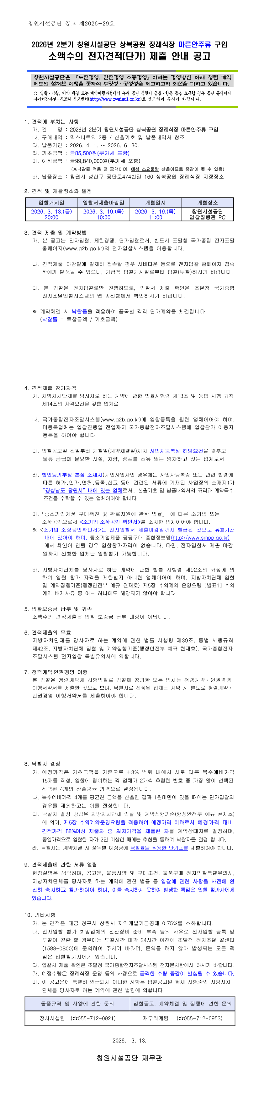 2026년 2분기 창원시설공단 상복공원 장례식장 마른안주류 구입 |