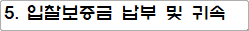 5. 물품 구매계약 일반조건 규정에 의한 지연배상금이 시행령 제51조에 따른 당해 계약보증금 상당액에 달한 경우로서 계약이행을 완료할 가능성이 없다고 판단될 경우